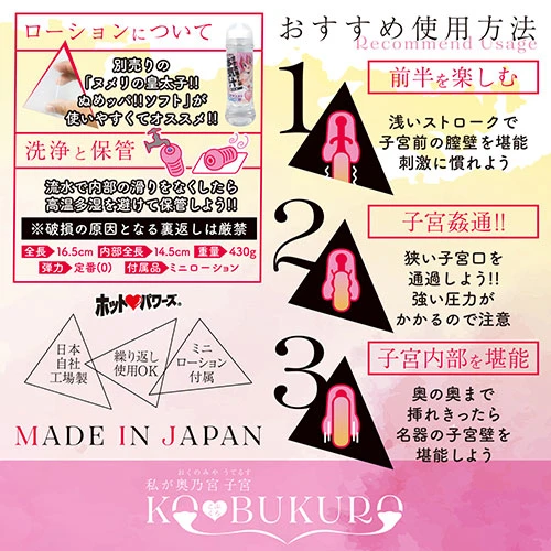 今回レビューしていくのはホットパワーズオリジナルオナホールの中でも長らく人気を博している「私が奥乃宮子宮(おくのみやうてるす) KO★BUKURO」です。