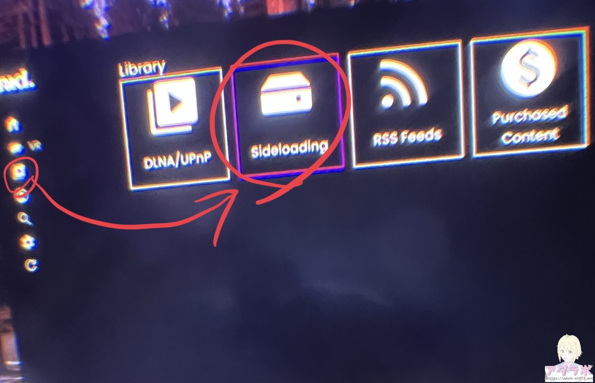 - 「rad.」を起動して「ライブラリ」から「Sideloaded Videos」を選択し動画を再生する。