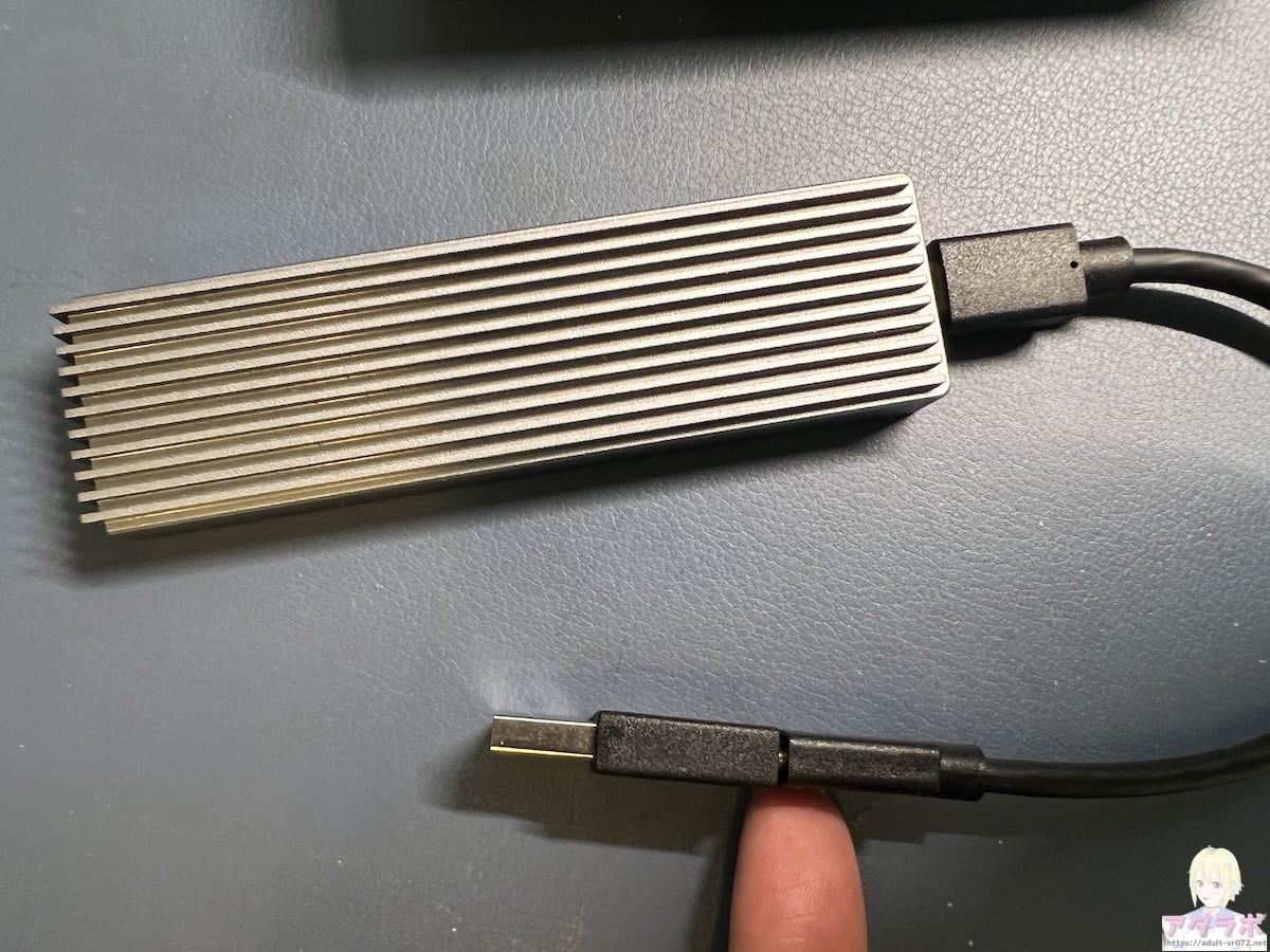 外付けSSDまたはHDDを用意します。VRの動画は1タイトルで20GB以上かかるものが多く存在します。アダフェスの8K画質だとさらに容量半端ないですよね。