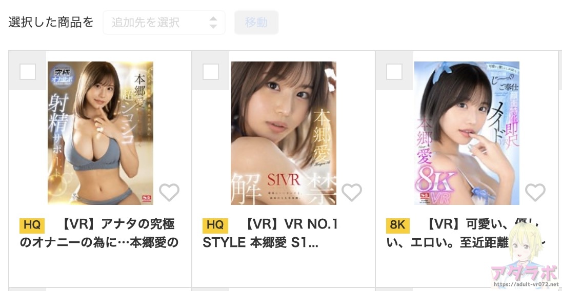 同様に、記事を書いている時点でVR動画はFANZAの「VRch」でも本郷愛の動画を見ることができません。S1VRの動画自体はVRchで配信されているので、これも1年経てばラインナップに追加されるでしょう。