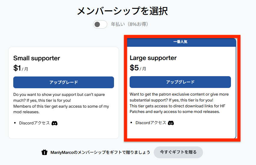 ▼Torrentを使いたくないならManlyMarco氏のPatreonに入会