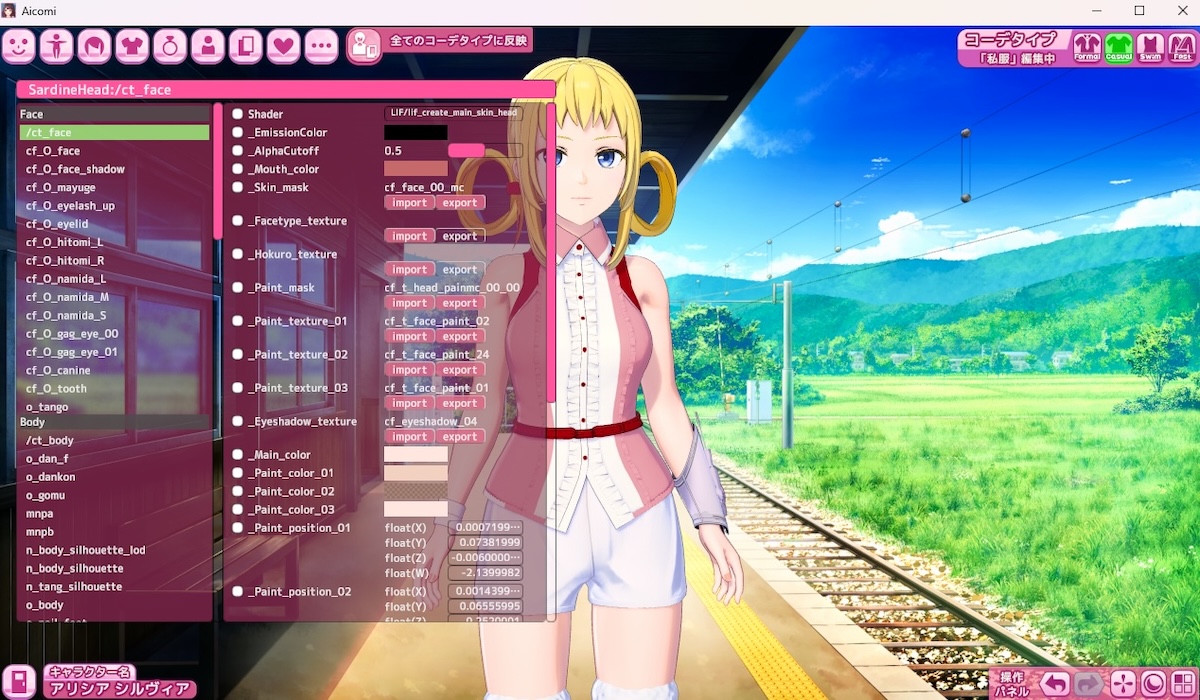 テクスチャおよびマテリアル変更ツール。キャラ作成中に[Ctrl+s]でUIのON/OFFができる。