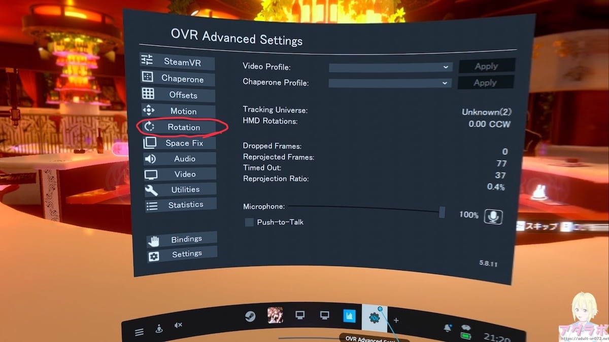 OVRを起動したらメニューを開いて【Motion】を選択します。