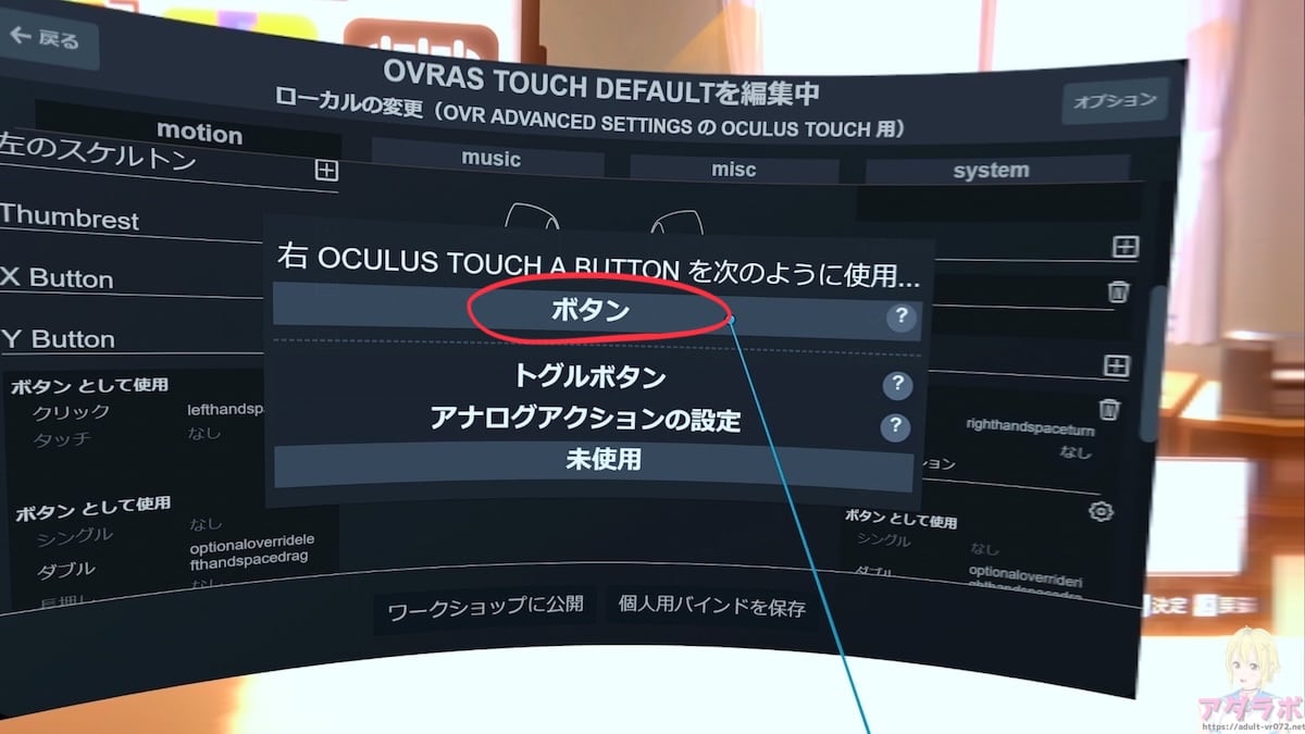 このような表示が出るので【ボタン】を選択します。グリップに機能を追加する場合も【ボタン】を選択しましょう。
