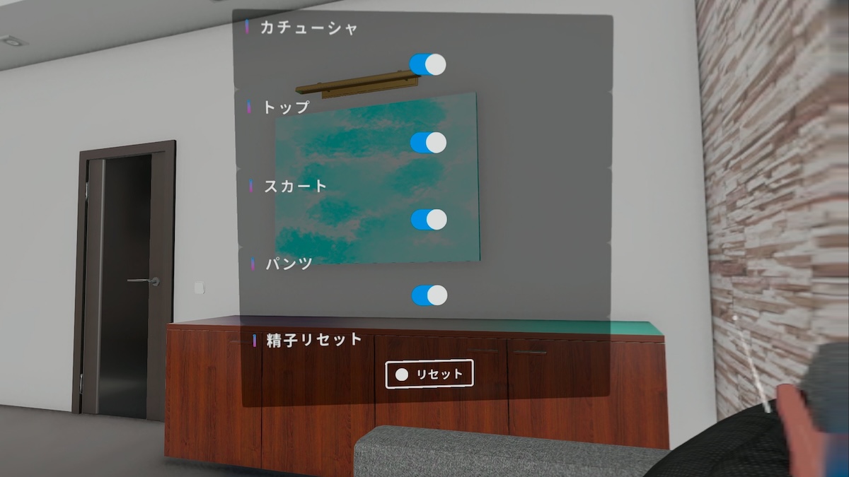 エッチパートは前作同様にコントローラーとの親子付けによってメイドさんの動きが同期されます。左右のコントローラーのうち、指定した方を動かすことでピストン運動したりフェラしたりと連動します。