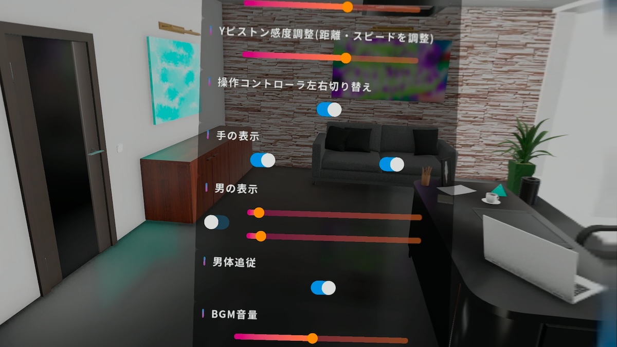 どちらのコントローラーと同期するかは設定で変更することが可能。男の表示やピストン感度なども変更できるので確認しておくといいかもしれません。