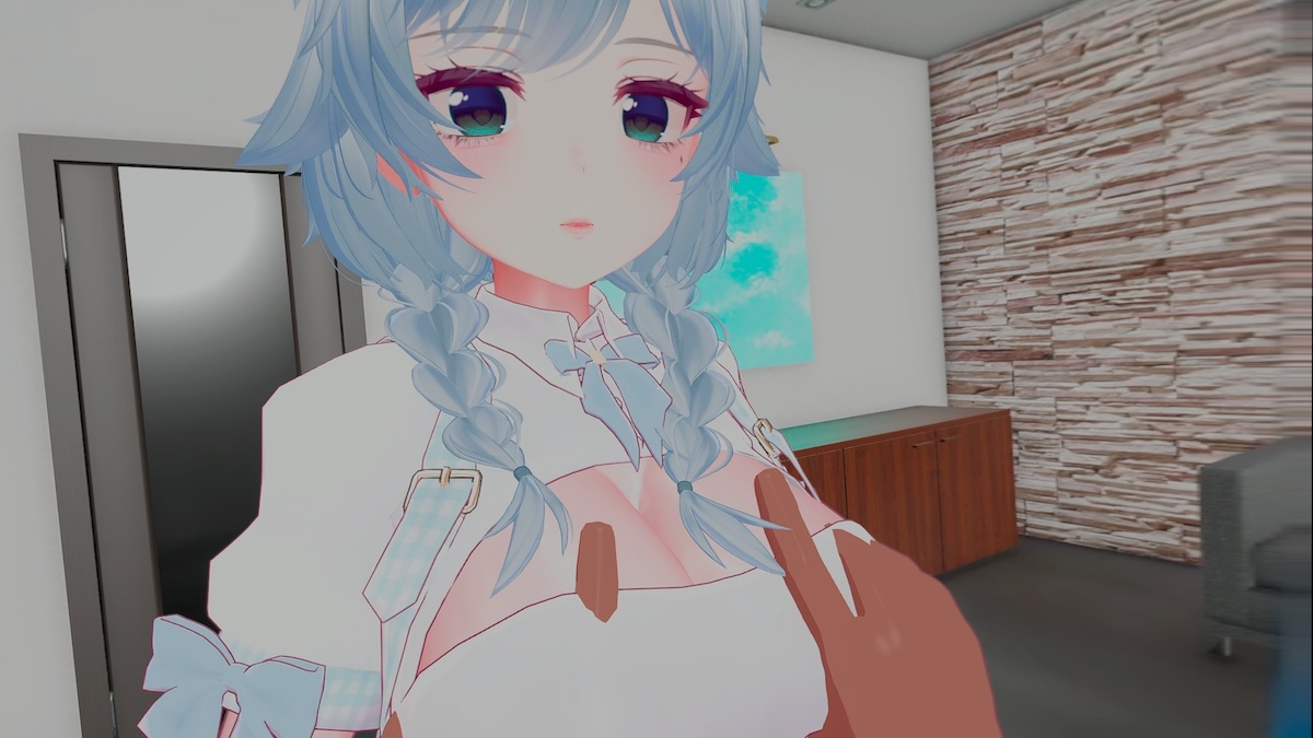 それとキスもできません。一応プレイヤーの顔(カメラ)を女の子の顔に近づけると、キスっぽい頭部の動きをしますが、これは「こっち見て機能」によるものですね。近づきすぎると貫通して中身が見えるので注意。