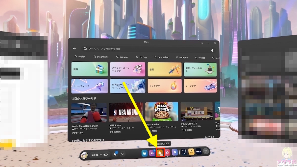 | メニューからMeta Horizon Storeを起動する。 | ![]() ![]() |