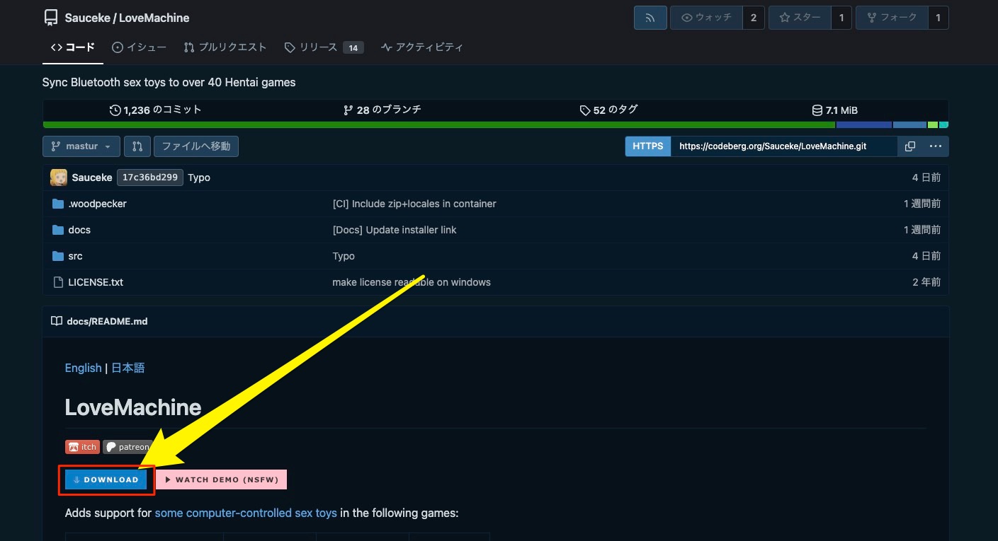 LoveMachineをダウンロードする(Codeberg)