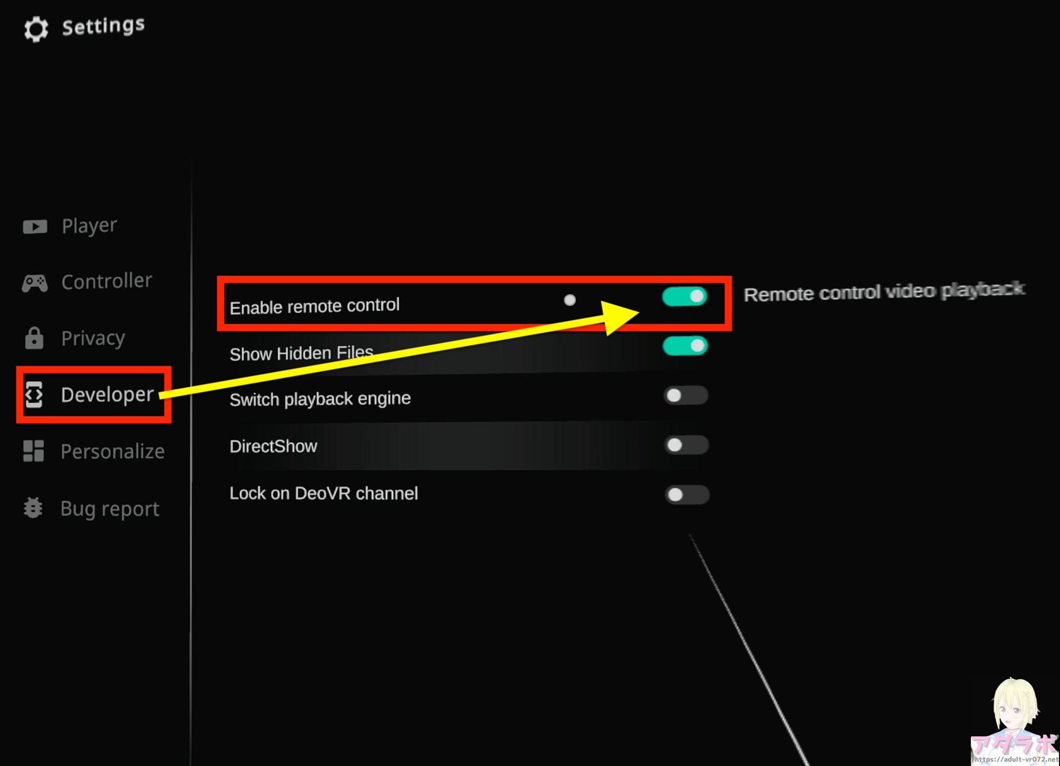 メニュー左の「Developer」から「Enable remote control」をオンにしましょう。