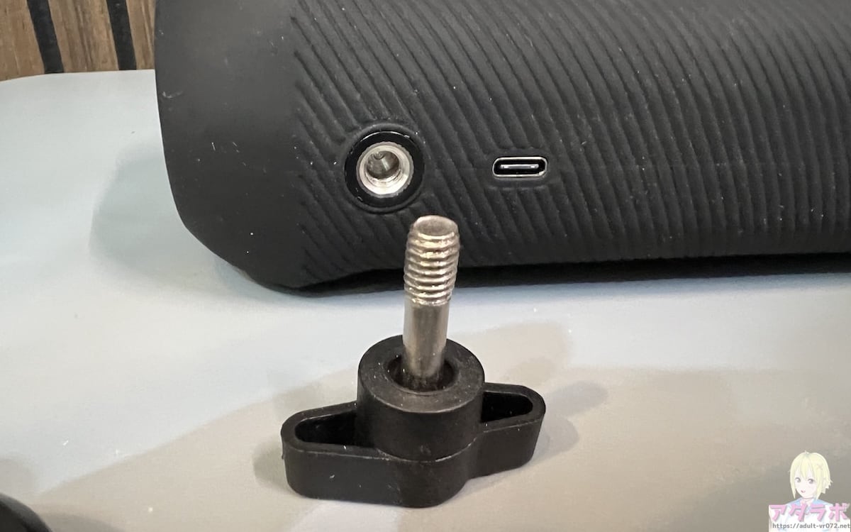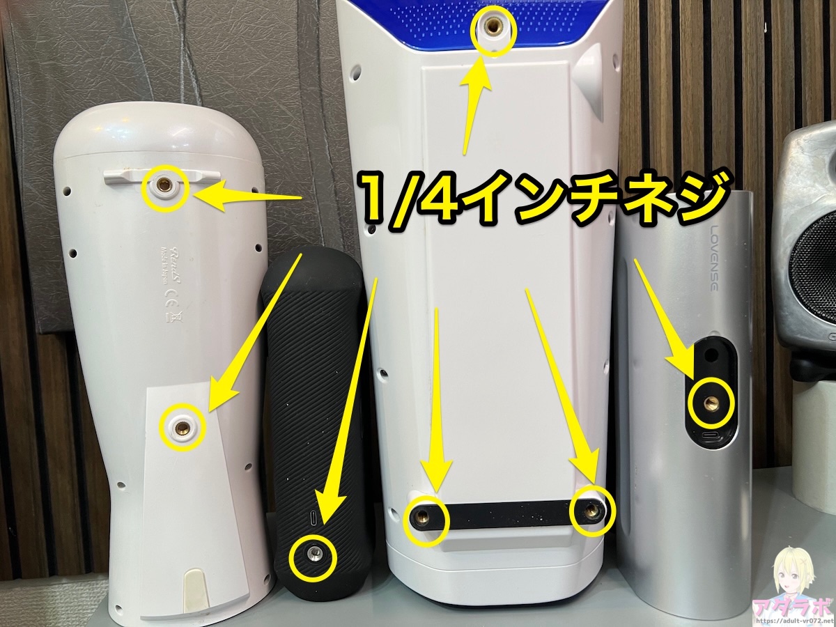 ネジのサイズに関してはオーソドックスな1/4インチネジに対応。このサイズは他の電動オナホールと共通となっています。カメラの固定器具も同様のサイズが多いですね。
